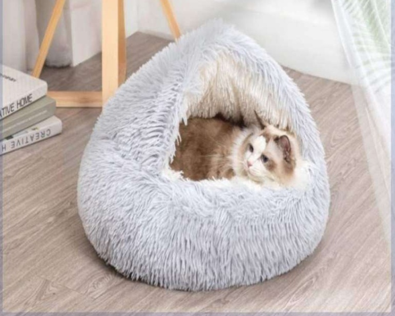 ふわもこ素材の心地よさが魅力の猫用ドーム型ベッドです。