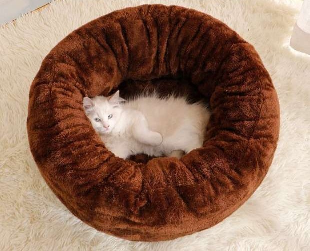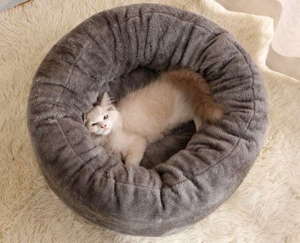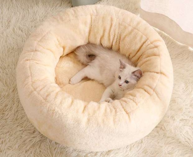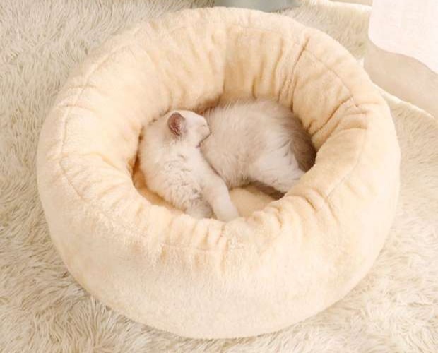 ふわふわ素材の円形ペットマットです。 猫用に設計された深みのある形状で、愛猫を優しく包み込み安心感を与えます。 寝心地抜群で猫の快適な睡眠をサポートします。 シンプルなデザインで部屋の雰囲気を問わず馴染むペットマットです。
