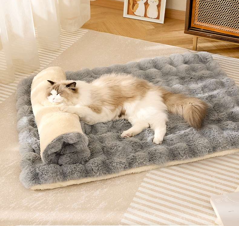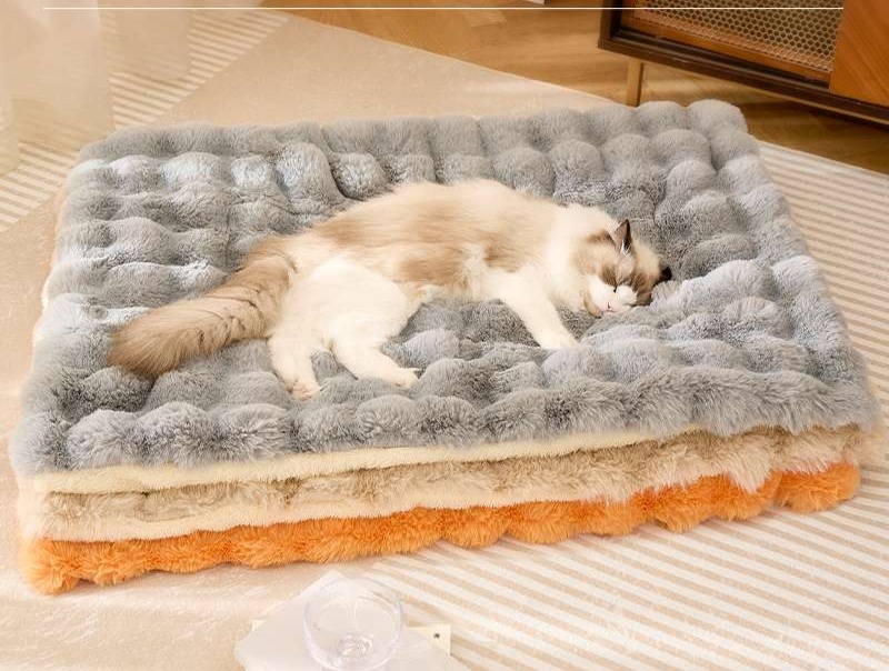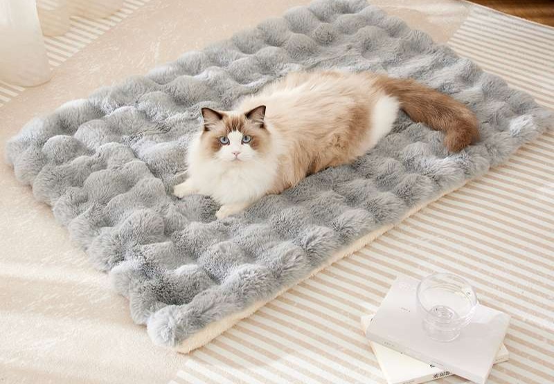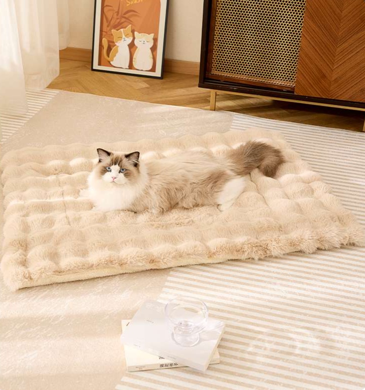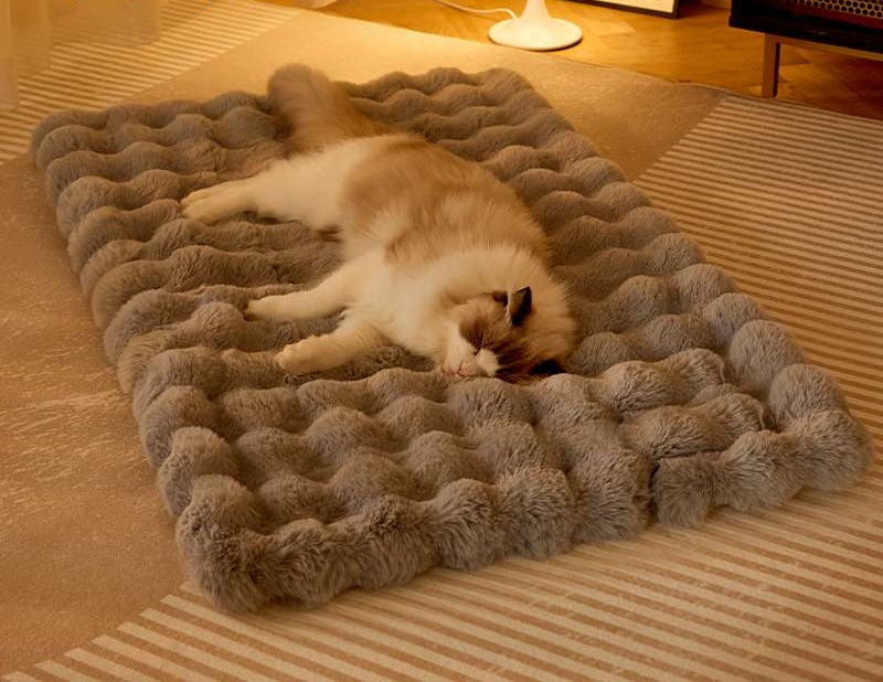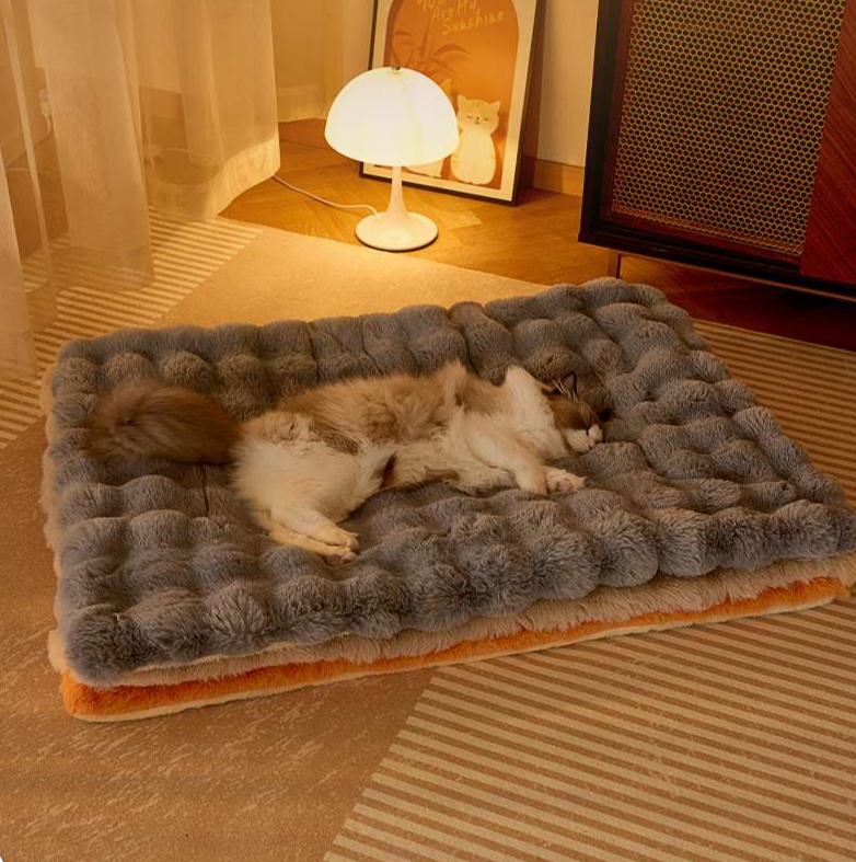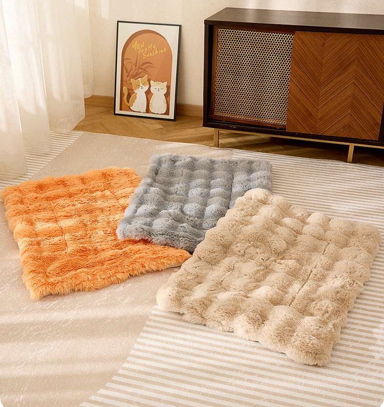 ぽかぽか温かく、ふかふかの肌触りが贅沢なペットマット。犬、猫兼用で、どちらのペットにも最適な快適な寝床です。