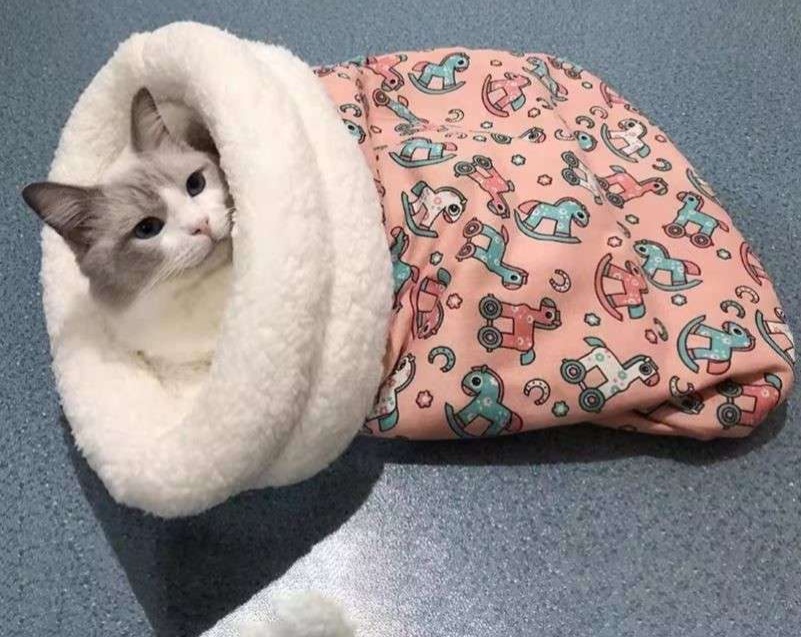 まるで寝袋のような設計で、猫ちゃんが心地よく休める居心地の良い空間を提供