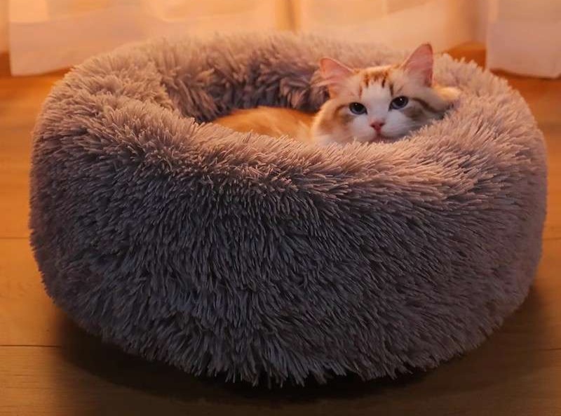 ドーナツ型の立体的な構造が愛猫を優しく包み込み、快適な睡眠をサポート