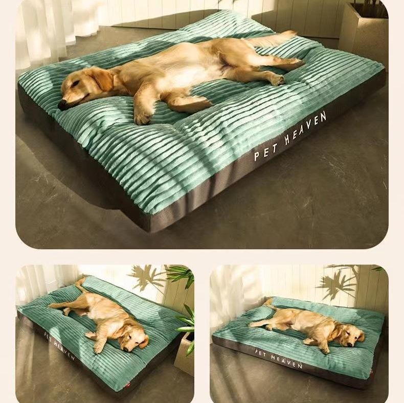 大型犬もゆったり寝そべれる広々サイズで、リビングや寝室に馴染むおしゃれなデザインが魅力です。