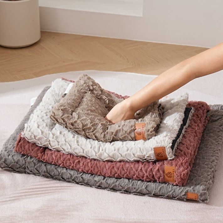犬・猫兼用のペットマットで、立体的なキルティング加工が特徴の多機能敷物です。