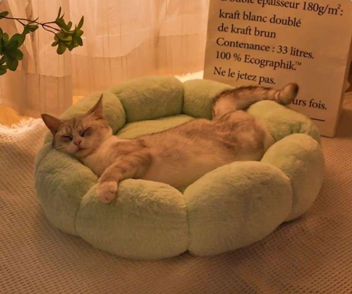 ふわふわの花びら型ペットマットで愛猫をやさしく包み込みます。 暖かく快適な空間で、猫用のくつろぎスポットとして最適です。 洗濯可能で清潔に保てるので、長く使える実用的な猫用ベッドです。 花のような優しいフォルムが、お部屋のインテリアとしても映えます。