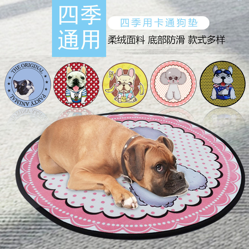 可愛い犬柄がデザインされた円形のペットマットです。 犬・猫兼用で一年中快適にお使いいただけます。 柔らかな素材で肌触りが良く、大切なペットの休息場所に最適です。 底部には滑り止め加工が施されており、床を傷つけず安心してご利用いただけます。 複数のデザインからお選びいただけるので、お部屋の雰囲気やペットの個性に合わせてお楽しみください。 お手入れも簡単で清潔を保てます。